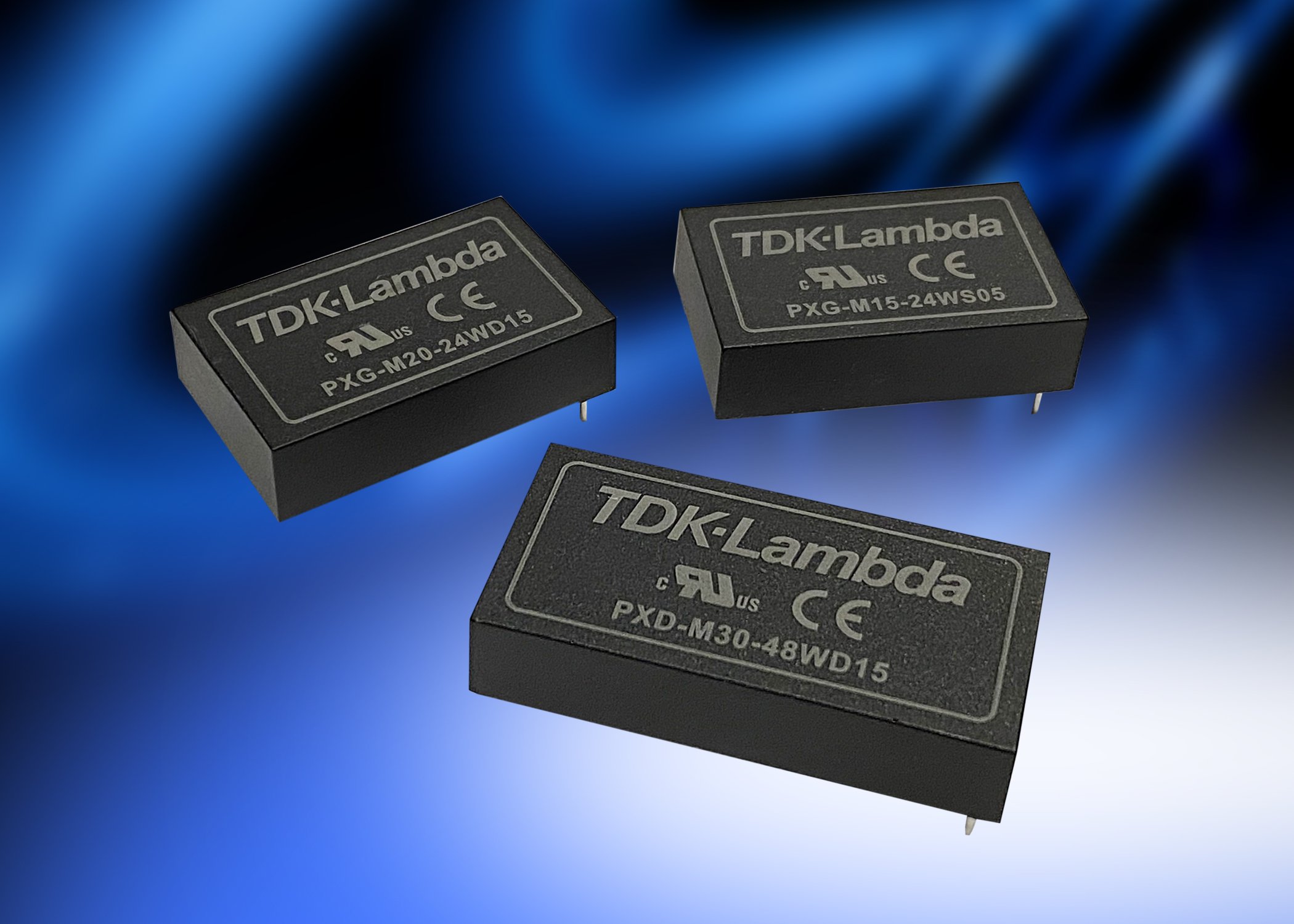 TDK Corporation (TSE 6762) announces the introduction of the 15 to 20W PXG-M and 30W PXD-M30 board mount DC-DC converter series. With 4:1 input ranges of 9 to 36Vdc and 18 to 75Vdc, the two series are certified to IEC 60601-1 (medical) and IEC 62368-1 (ICT - Information and Communication Technology equipment). The input to output isolation is 5,000Vac allowing them to be used in multiple medical and industrial applications.