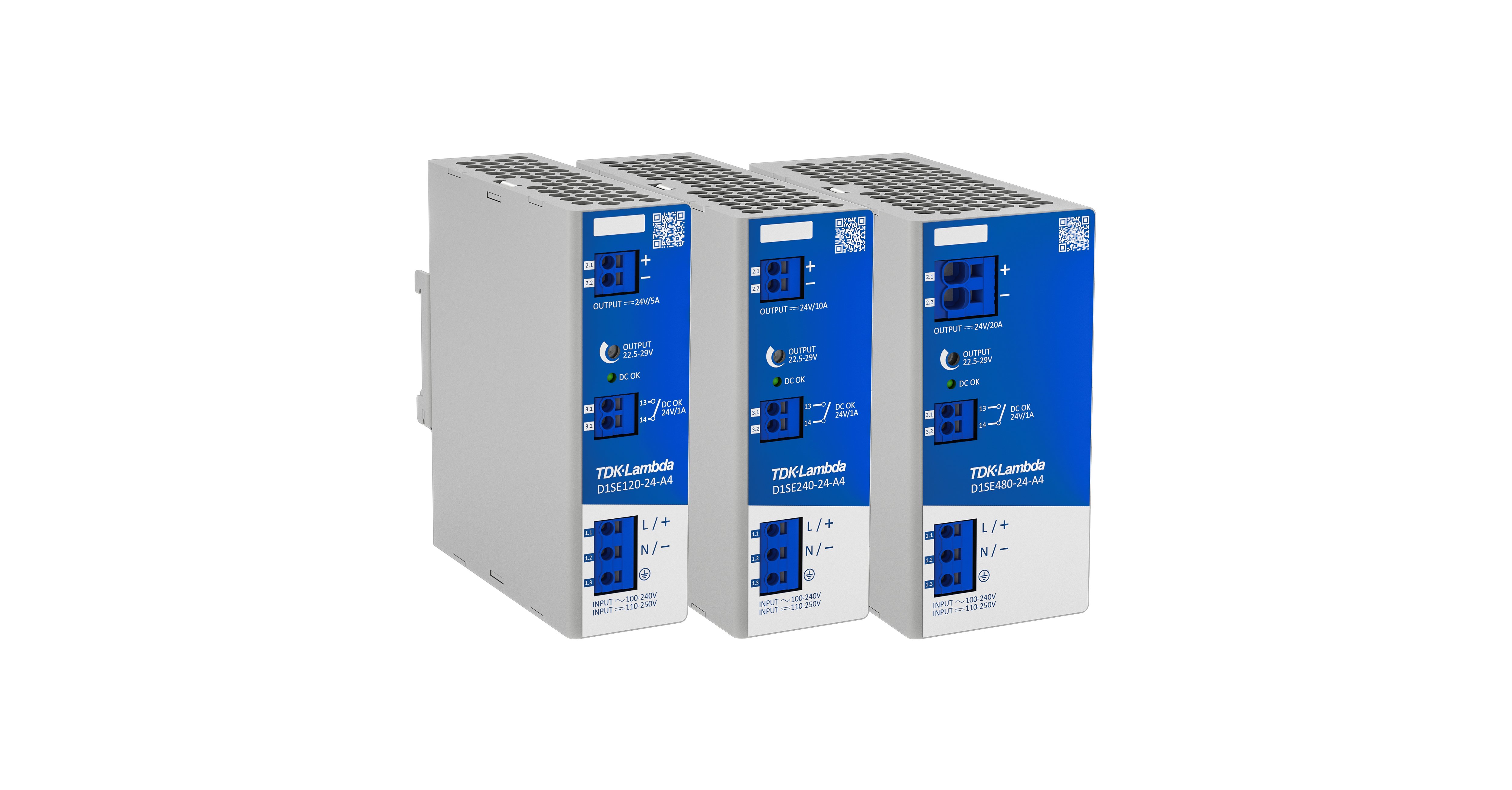 TDK Corporation (TSE 6762) announces the introduction of the single-phase D1SE series to TDK-Lambda’s extensive range of DIN-rail mount power supplies. This entry-range series comes with an AC and DC input and is optimized for essential functionality, without compromising on performance or quality. The products are rated for continuous operation at 120W, 240W or 480W with a 24V output. With efficiencies of up to 95.1%, energy consumption and internal losses are reduced, lowering internal component temperatures and enhancing long-term product reliability.